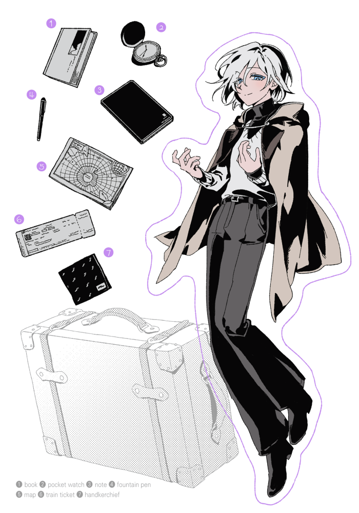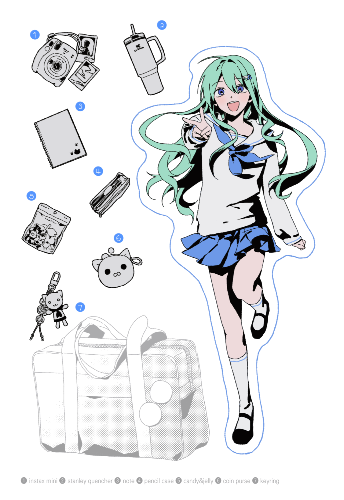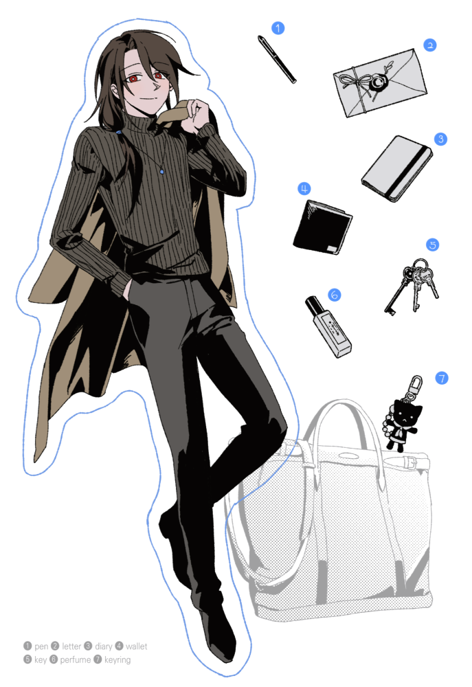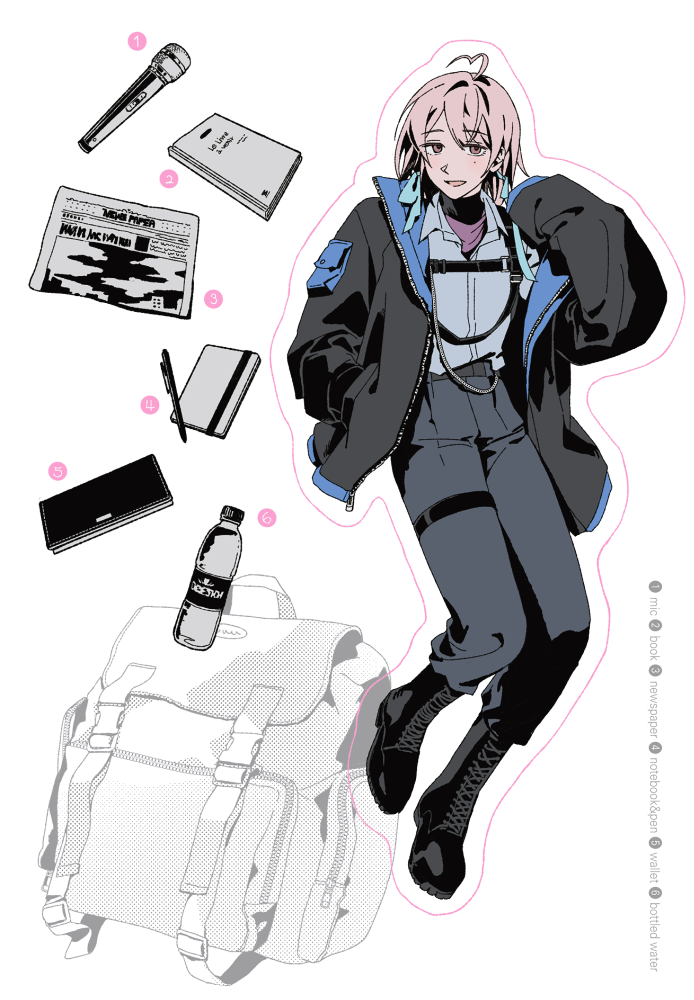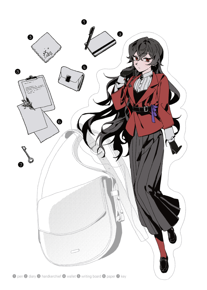 전신+큰오브젝트+작은오브젝트의 조합이기 때문에 가방속 소품을 보여주는게 아닌 다른 방식의 컨셉으로도 작업가능합니다.