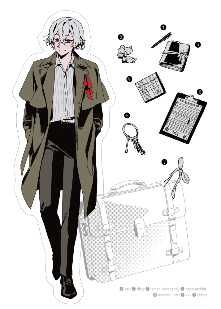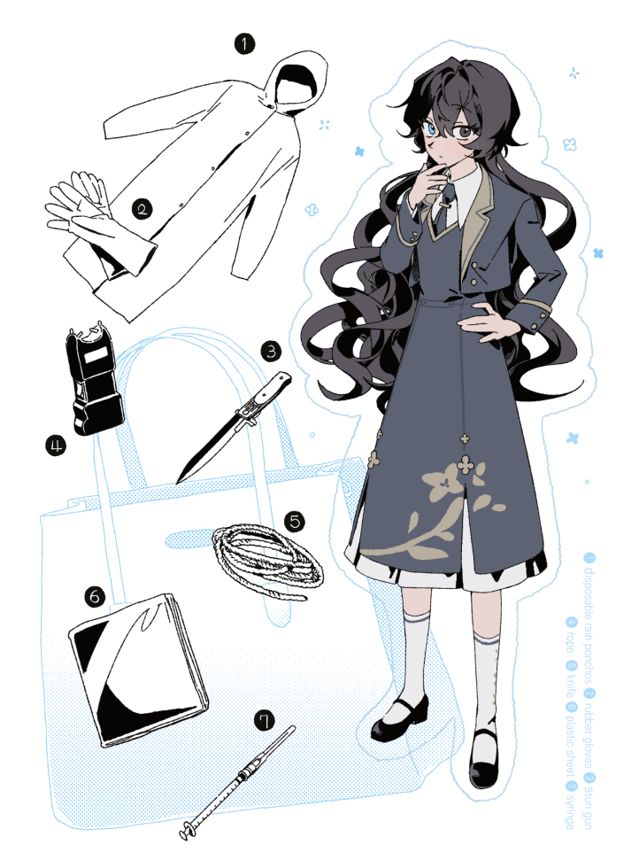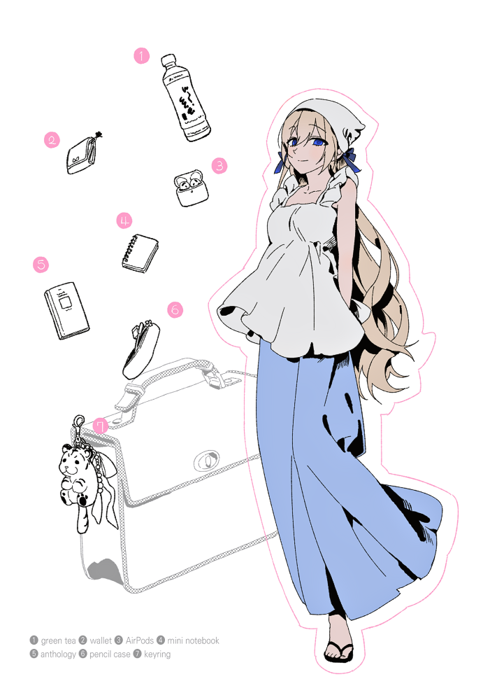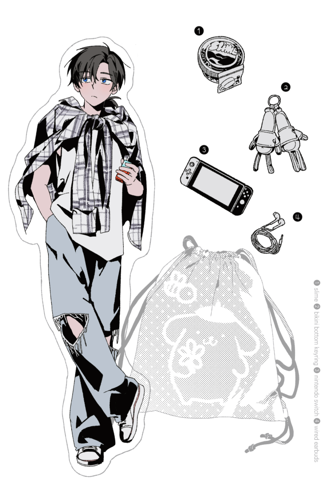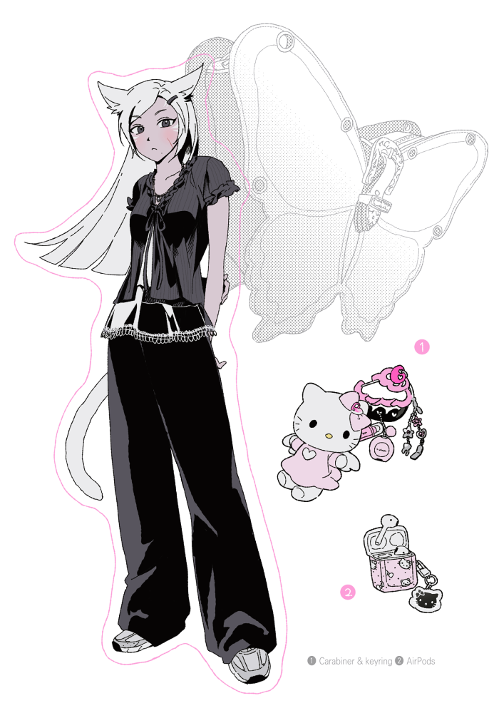전신+큰오브젝트+작은오브젝트의 조합이기 때문에 가방속 소품을 보여주는게 아닌 다른 방식의 컨셉으로도 작업가능합니다.